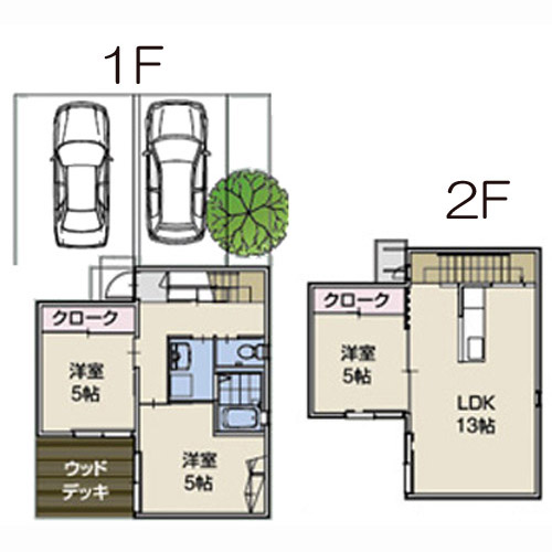 間取り内容 2階LDK13畳/1階洋室5畳2室